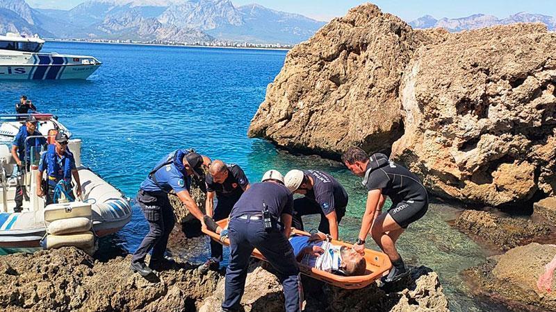 Antalya'da Yasin Kayhan (30), manzara izlemek için gittiği 30 metre yüksekliğindeki falezlerden düşüp yaralandı. Kayalıklarda mahsur kalan Kayhan, deniz polisi ve itfaiye ekiplerince kurtarılarak, hastaneye götürüldü.