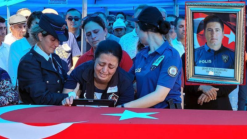 Şehidin eşi Ebru Ergin ve annesi Ayfer Ergin, Yahya Ergin’in Türk bayrağına sarılı tabutuna kapanıp, uzun süre gözyaşı döktü. Şehidin polis yeleği giyen eşi Ebru Ergin, "Ne olur çık gel, ne olur gitme. Seni öyle mi uğurladım dün?" diyerek, gözyaşı döktü.