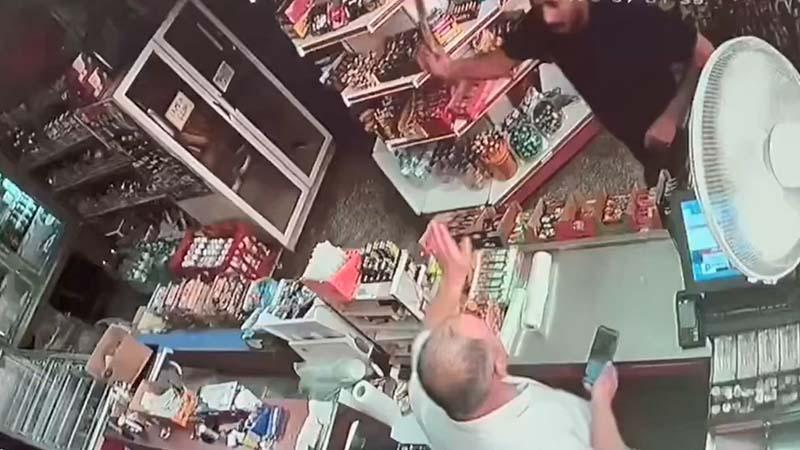 Eskişehir'de bir müşterinin, eriyen dondurmasını değiştirmeyi reddeden market sahibine palayla saldırdığı anlar güvenlik kamerasına yansıdı.