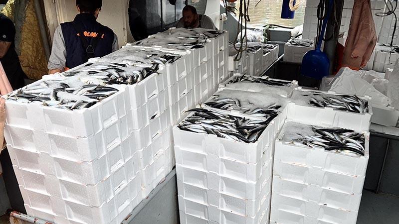 Marmara Denizi'nde 3 gün süren lodosun dinmesinin ardından avlanmaya çıkan Tekirdağlı balıkçılar, limana yakaladıkları 600 kasa balıkla döndü.
