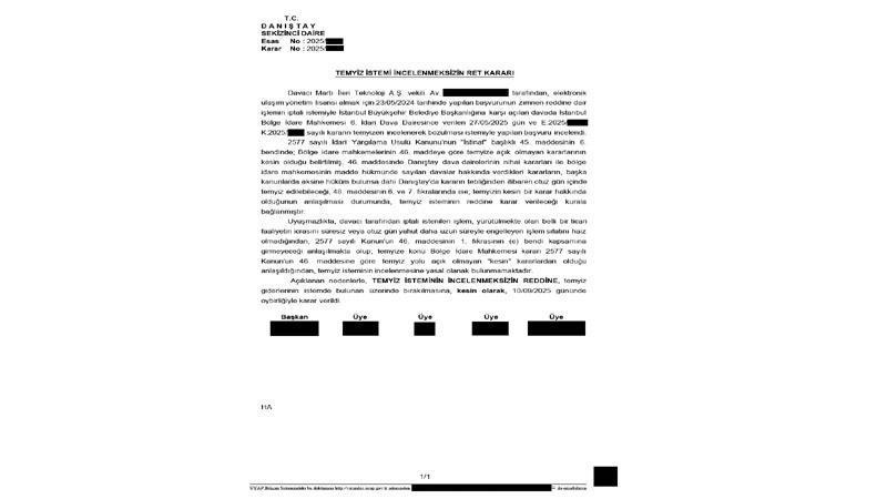 İstanbul 7'nci İdare Mahkemesi daha önce Martı’nın e-ulaşım lisansının şartlarını yerine getirdiğine karar vermişti. Dava Danıştay’a taşınmıştı. Danıştay, kararı sonuçlandı ve Martı’nın lisans alma hakkı resmen tescil edildi.