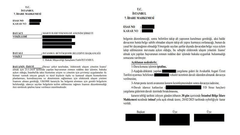 Martı, İstanbul 7'nci İdare Mahkemesi'nde 2 yıl süren dava süreci sonunda e-ulaşım lisansı aldı.