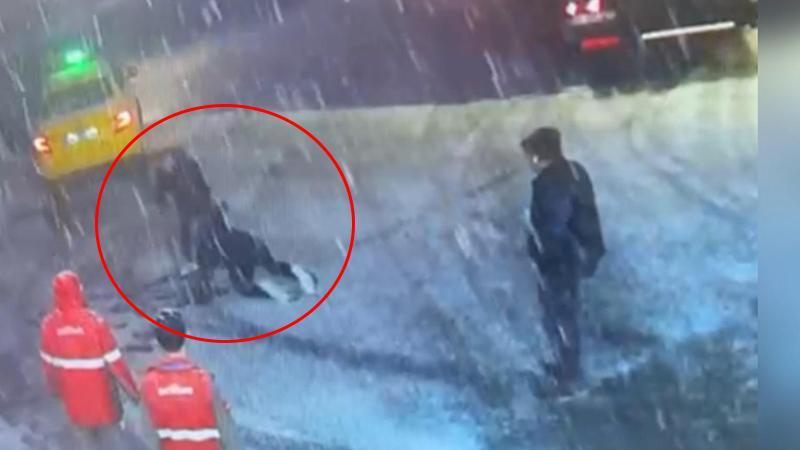 Maslak’ta iÅŸ insanına bıçaklı saldırı kamerada: Çalışanlar saldırgana dubalarla vurdu