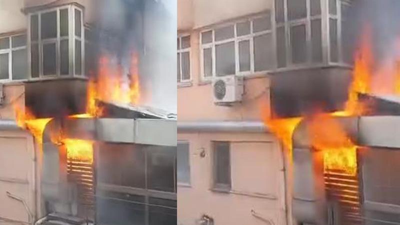 Şişli'de bir restoranın mutfak kısmında yangın çıktı. Yangın, üst katlara sıçramadan söndürülürken mutfağın alev alev yanması cep telefonu ile görüntülendi.