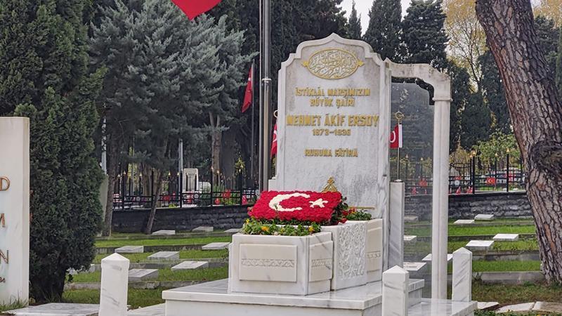 İstiklal Marşı’nın yazarı şair Mehmet Akif Ersoy, vefatının 89’uncu yılında Edirnekapı’daki mezarı başında anıldı. Anma programında Kuran’ı Kerim okundu, dualar edildi. Tören katılımcıların kabre karanfil bırakmasıyla son buldu.