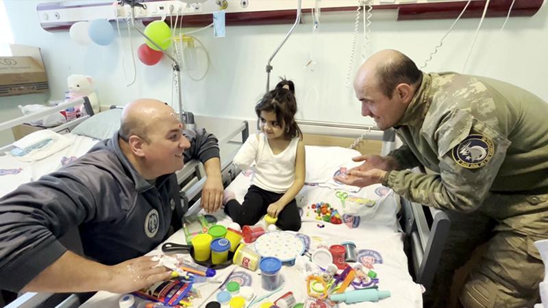 Hava Kuvvetleri Komutanlığı personeli, Kahramanmaraş merkezli depremlerin ardından enkazdan sağ kurtarılan 4,5 yaşındaki Fatma Ela Aşıcı'yı hastanede ziyaret ederek ona moral verdi.