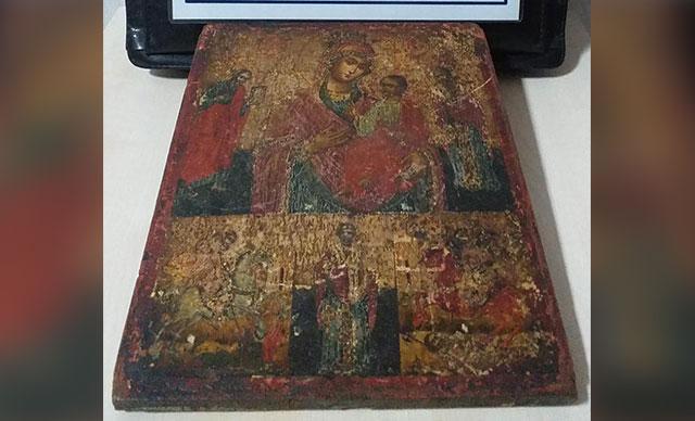 Müze Müdürlüğü'nün yaptığı ön incelemede ikona üzerinde Hz. Meryem kucağında İsa ile tasvir edildiği, bunun dışında 5 figürün daha yer aldığı belirtildi. Eserin, kırmızı yeşil renklerin hakim olduğu ve altın varağın kullanıldığı 11-13'ncü yüzyıllar arası tek tanrı dönemine ait ve gerçek olduğu saptandı.