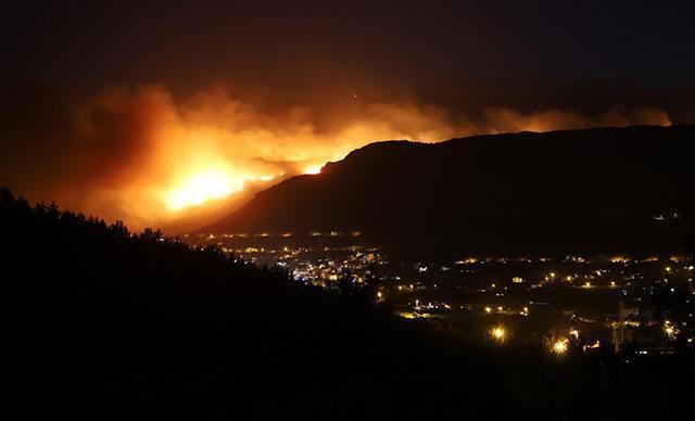 Mersin'in Aydıncık ilçesinde başlayan orman yangını, ikinci günün akşamında halen devam ediyor. Rüzgarın şiddetini artırmasıyla yangın, ilçe merkezine yaklaştı. Havanın kararması nedeniyle havadan müdahale yapılamazken, ekipler karadan söndürme çalışmasını sürdürüyor.