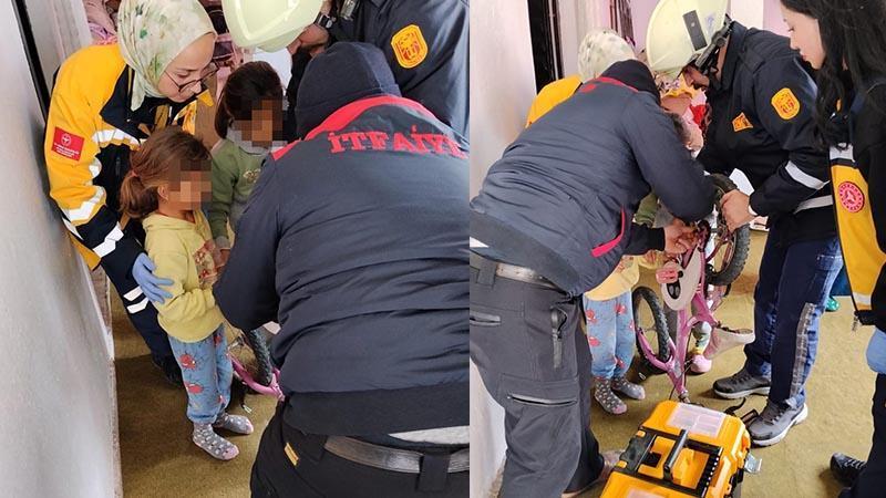 Merve’nin bisiklet zincirine sıkışan parmağını, itfaiye ekipleri kurtardı