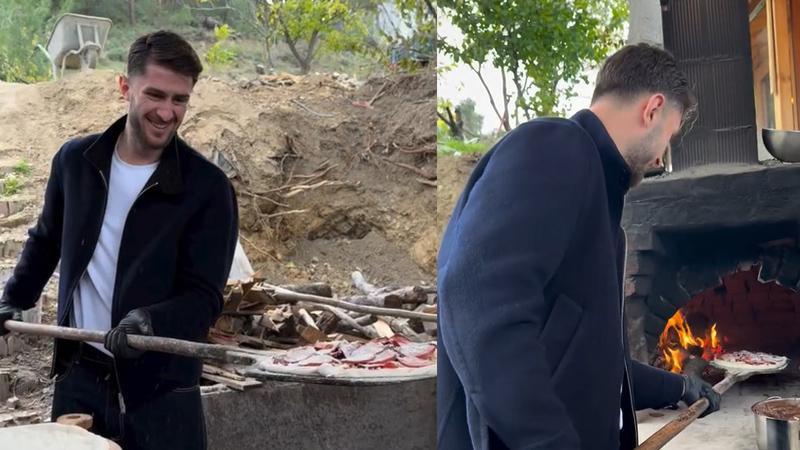 Milli futbolcu, memleketi İznik'te kendi pizzasını hazırlayıp, pişirdi