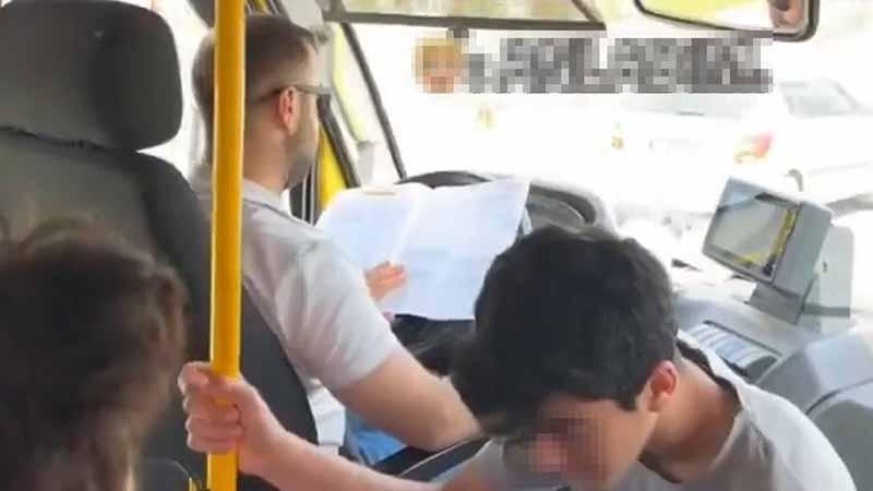 Minibüs şoförü, direksiyonda kitap okurken görüntülendi