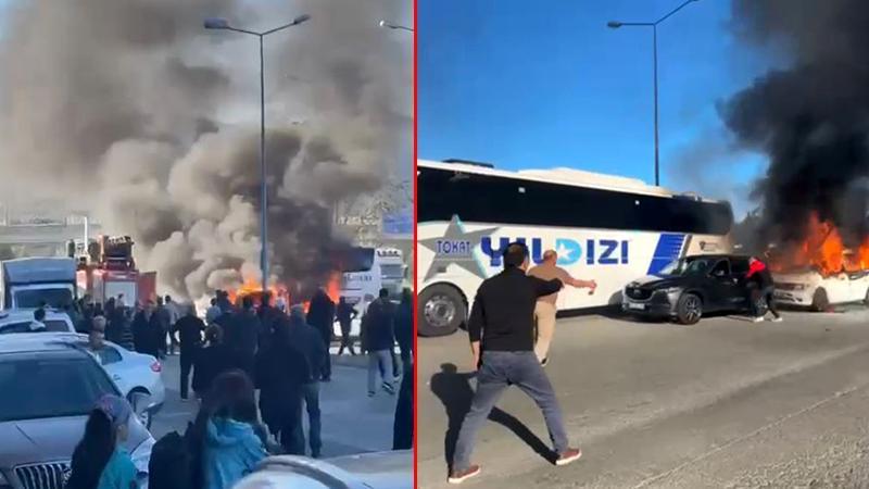 Kısa süre sonra minibüs aniden alev aldı. Alevler, yanında park halinde farklı bir otomobile sıçradı. Yangın paniğe neden olurken, ihbarla bölgeye itfaiye ekipleri sevk edildi. Ekiplerin hızlı müdahalesiyle yangın söndürüldü. 2 araçta hasar oluşurken; yanan minibüsün önündeki cipin vatandaşlar tarafından çekilerek son anda kurtarıldığı anlar, cep telefonu kamerasına yansıdı.