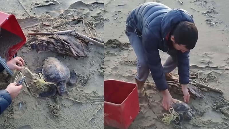 Gökçeada ilçesinde 29 Kasım'da Tolga Kılıç ve arkadaşları sahilde gezdikleri sırada yerde hareketsiz haldeki caretta carettayı fark etti. Kılıç ve arkadaşları yanına gittikleri kaplumbağanın misina ile ipe dolandığını gördü. Grup, caretta carettayı kurtarıp, doğal ortamına geri bıraktı. O anlar ise cep telefonu kamerasıyla kaydedildi.
