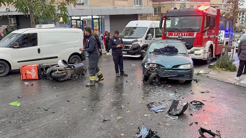 Motosiklet ile otomobilin çarpıştığı kaza kamerada; 2 yaralı