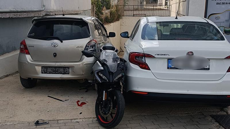 Motosiklet, otomobile çarpıp başka aracın üzerine düştü; 1 yaralı