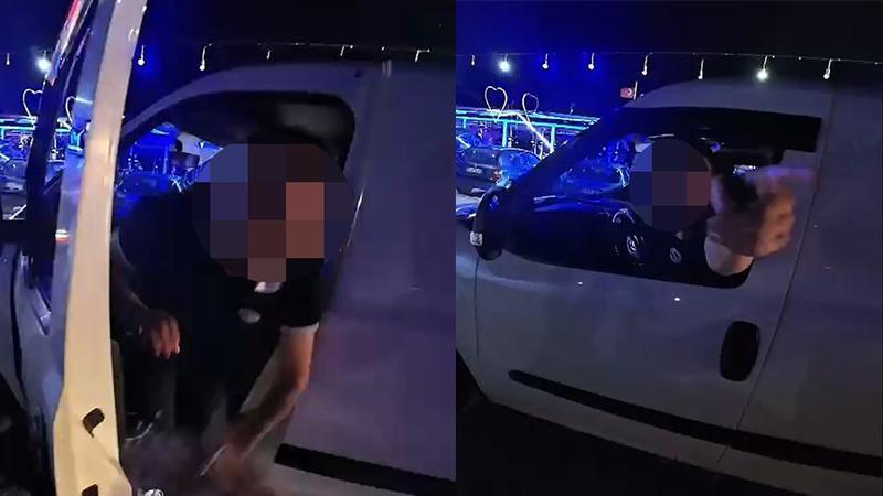 Olay, 10 Haziran’da Adnan Menderes Bulvarı'ndaki Menderes Adası'nda meydana geldi. Yolda ilerleyen motosiklet sürücüsü, kendisini sıkıştıran 35 ZID 04 plakalı hafif ticari aracın sürücüsü S.A.’ya, "Birader nasıl araba kullanıyorsun?" diyerek tepki gösterdi. Bunun üzerine aracından inen S.A., “Seni parçalarım, yanında kız var niye rolleniyorsun?” diye karşılık vererek motosikletin sürücüsüne saldırmaya çalıştı. Yaşananların, motosiklet sürücüsünün kask kamerasına yansıdı. Görüntülerin sosyal medyada paylaşılması üzerine harekete geçen polis ekipleri, sürücü S.A.’yı gözaltına aldı. Karayolları Trafik Kanunu’nun ilgili maddeleri uyarınca S.A.’ya bin 986 TL, araç sahibine ise 4 bin 512 TL olmak üzere toplam 6 bin 498 TL idari para cezası kesildi. S.A., emniyetteki işlemlerinin ardından adliyeye sevk edildi.