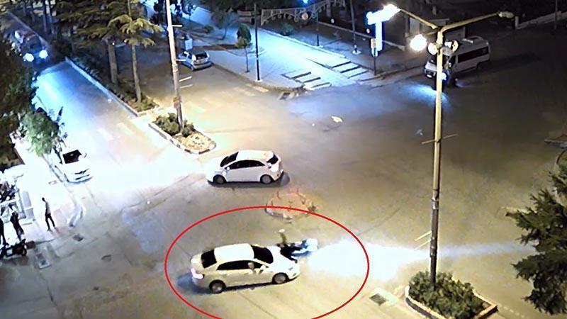 Motosiklete çarpan otomobilin sürücüsünün kaçtığı kaza kamerada
