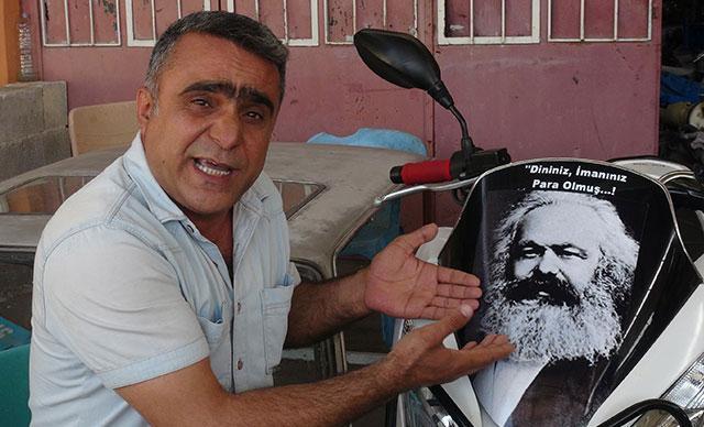 Motosikletine Karl Marx fotoğrafı yapıştıran oğluna verdiği tepki sosyal medyayı salladı