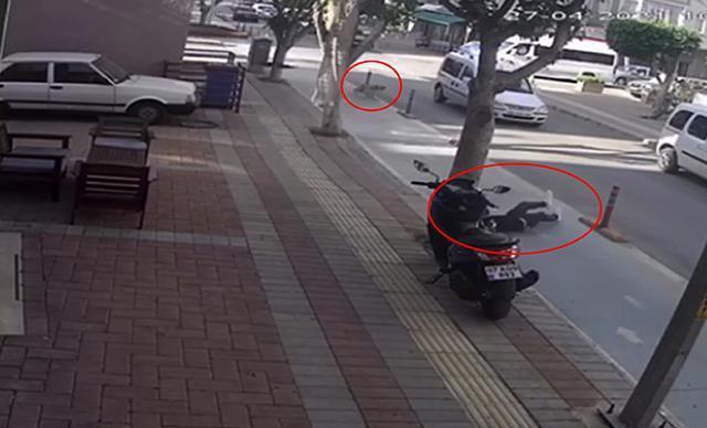 Öte yandan kaza anı, çevredeki iş yerinin güvenlik kamerasına anbean yansıdı.