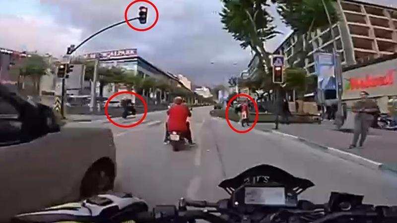 Osmangazi ilçesi Fevzi Çakmak Caddesi’nde 2 motosikletli yarıştı. Sürücüler, motosikletlerinin ön tekerleklerini kaldırıp, kentin en işlek caddesinde süratle ilerledi. Sürücüler, o anları kask kameralarıyla kaydedip sosyal medyada paylaştı. Görüntülerde, ‘Başlıyoruz gençler hazır mıyız’ diyerek, araçlara kırmızı ışık yanarken yarışa başlayan motosikletlilerin bir sonraki lambalarda da araçlara kırmızı ışık yanmasına ve karşıya geçen yayalara aldırış etmeden yola devam ettiği görüldü. Kırmızı ışıkta duran araçları sollayan motosikletlilerin, hız kesmeden ön tekerlerini kaldırıp tek teker üzerinde metrelerce ilerlediği anlar görüntüye yansıdı.