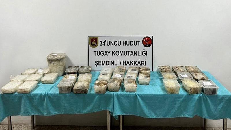 Bakanlığın sosyal medya hesabından yapılan açıklamada, "Hudut birliklerimiz, vatanımızın güvenliği için 7/24 keşif, gözetleme ve devriye görevini kararlılıkla sürdürüyor. Son olarak İran hudut hattında yapılan arama tarama faaliyetinde 3 adet çuval içerisinde toplam 81 kilo 133 gram uyuşturucu madde tespit edildi. Ele geçirilen uyuşturucu madde, gerekli işlemlerin yapılması üzere Şemdinli İlçe Jandarma Komutanlığı’na teslim edildi" ifadelerini kullandı.
