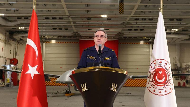 TSK'nın yerli savunma sanayi ürünleriyle geliştirilmesi çalışmalarına da devam edildiğini aktaran Tuğamiral Aktürk, "Bu kapsamda; Kara Kuvvetleri Komutanlığımızca muhtelif miktarda; TB-3 SİHA ile ilk kez olmak üzere Elektronik Devreli El Yapımı Patlayıcı Düzeneklerini Tespit ve Zararsız Hale Getirme Sistemi, Hava Kuvvetleri Komutanlığımızca ise çeşitli miktarda Aksungur ve Akıncı insansız hava araçları ile CATS Elektro-Optik/Kızılötesi Kamera Sistemi, muayene ve kabul faaliyetleri tamamlanarak envantere alınmıştır. 8 adet temin edilmesi planlanan 'Yeni Tip Çıkarma Gemisi Projesi' kapsamında 3 Nisan’da ikinci gemi hizmete alınmış, üçüncü geminin liman kabul testleri tamamlanmıştır. Makine ve Kimya Endüstrisi Anonim Şirketimiz (MKE) ile ASFAT tarafından 7-12 Nisan tarihleri arasında Şili’de düzenlenen Uluslararası Hava ve Uzay Fuarı’na (FIDAE) katılım sağlanmaktadır" diye konuştu.