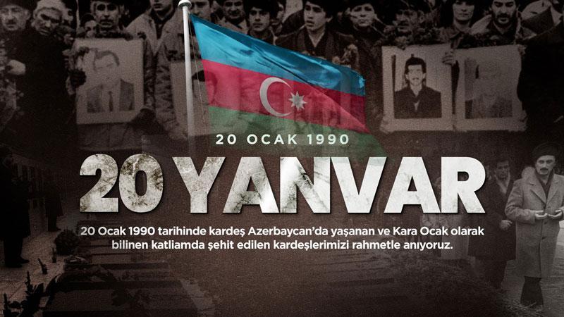 Bakanlığın Twitter'daki hesabından '#KanlıYanvar' etiketi ile yapılan paylaşımda, "Unutmadık, unutmayacağız. 20 Ocak 1990 tarihinde kardeş Azerbaycan'da yaşanan ve 'Kara Ocak' olarak bilinen katliamda şehit edilen kardeşlerimizi rahmetle anıyoruz. 'Tek millet, iki devlet' olarak Azerbaycan Türkü kardeşlerimizle bir ve beraber olmaya devam edeceğiz" denildi.