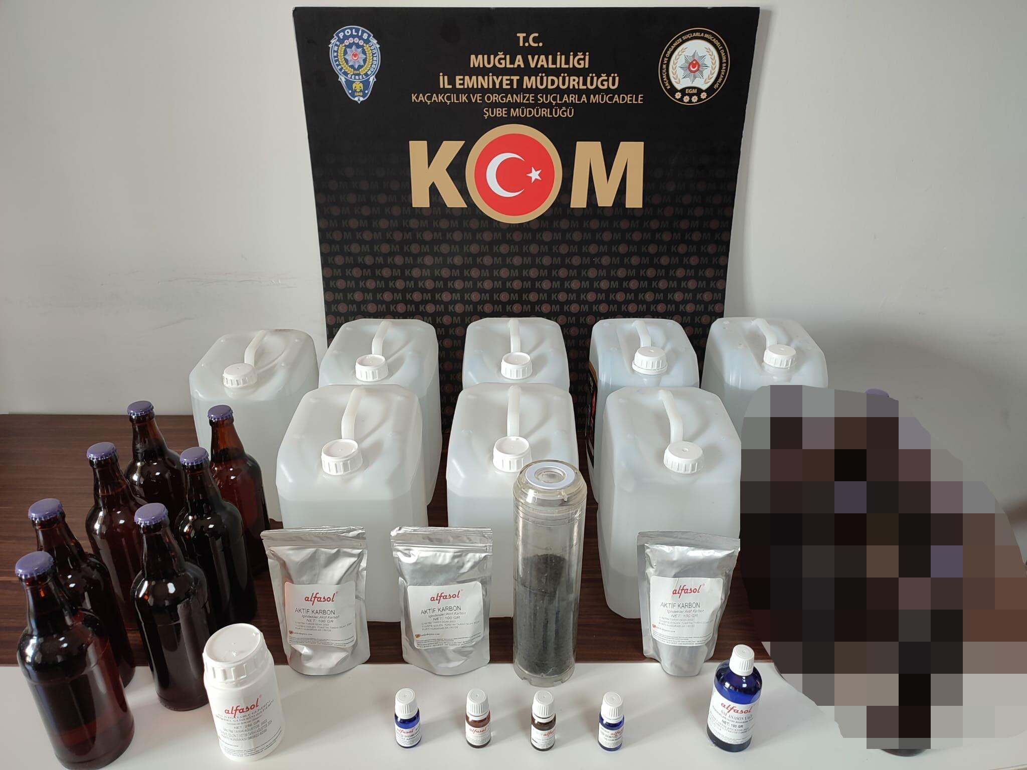 Emniyet Genel Müdürlüğü Kaçakçılık ve Organize Suçlarla Mücadele Daire Başkanlığı koordinesinde 81 ilde yapılan 'alkollü içki kaçakçılığı ile mücadele' kapsamında Muğla İl Emniyet Müdürlüğü KOM Şubesi ekipleri, Bodrum, Menteşe, Marmaris, Milas ve Fethiye ilçelerinde eş zamanlı operasyon düzenledi. Operasyonda şüphelilerin ev ve iş yerlerinde yapılan aramada bira, votka, rakı ve viskiden oluşan 100 litre sahte içki, Roma dönemine ait 1 bronz kılıç, 9 bin 400 adet dolu makaron, 6 kilo kaçak tütün ve alkol yapımında kullanılan malzemeler ele geçirildi. Operasyon kapsamında gözaltına alınan 15 şüphelinin emniyetteki işlemlerinin ardından adliyeye sevk edileceği öğrenildi.