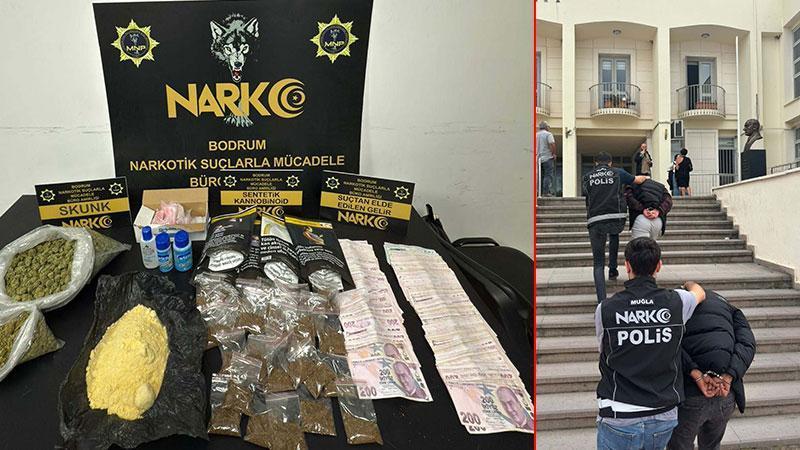 Muğla’nın Bodrum ilçesinde polisin otel odasına düzenlediği operasyonda çeşitli tür ve miktarlarda uyuşturucu ele geçirildi. Gözaltına alınan 2 şüpheli tutuklandı.