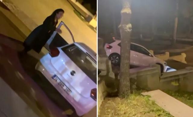 Sürücünün otomobiliyle merdivenden inme anları ise çevredekilerin cep telefonu kamerasına yansıdı. Bölgedekilerin sürücüye, "Bırakın bırakın insin karışma, çekilin. Abla el frenini indirseydin keşke. Bas gaza abla Allah'ın dediği olur. Araba askıda kaldı zaten" dediği duyuldu.