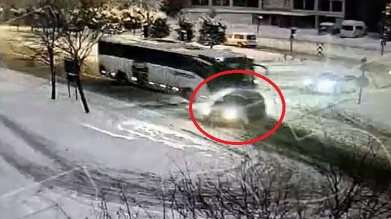 Öte yandan, güvenlik kamerası tarafından da kaydedilen kazada, otobüsün seyir halinde olduğu sırada, kavşaktan ana yola çıkan otomobile çarptığı görüldü. Kazayla ilgili inceleme başlatıldı.