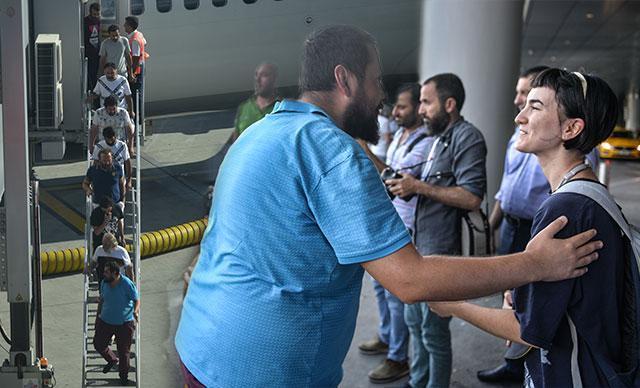 Polis eşliğinde uçaktan inen denizciler, TGS'ye ait özel bir araçla İstanbul Havalimanı Genel Havacılık salonuna götürüldü. Burada aileleri karşılanan denizciler, büyük sevinç yaşadı.