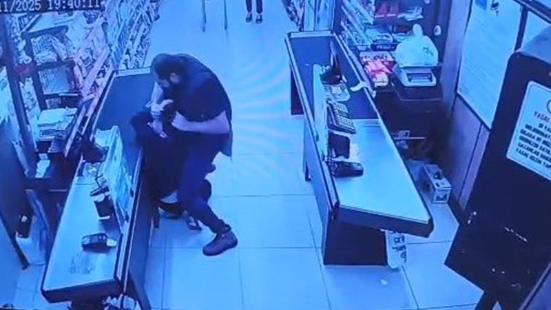 Oğlunu darbettiğini öne sürdüğü market çalışanını yumruklayıp tekmeledi
