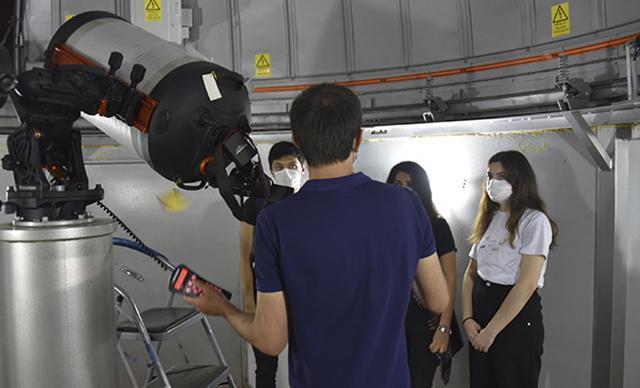 Fizik bilimine çok ilgili olduğunu belirten Ceyda Turan, “Fizik bilimine çok ilgiliyim. İleride Astronomi ile ilgili işler yapmayı düşünüyorum. Güneş sisteminde en çok Venüs’ü seviyorum. Çünkü geçenlerde Venüs’te Fosfin Gazı bulundu ve orada canlı yaşamı olabilir. Daha sonra Mars’ı seviyorum. Orada ileride koloni kurulabileceğini söylüyorlar. Belki de orada yaşam kurulabilir” dedi. Ezgi Kılıç ise,” Uzay haftası kapsamında gözlemevine geldik. Teleskop ile uzay gözlemi yapacağız” diye konuştu.