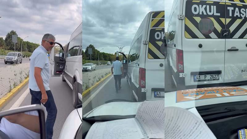 Gebze ilçesinde dün, okul servis minibüsünün şoförü, önünü kestiği hafif ticari aracın sürücüsünü “Barındırır mıyım seni bu memlekette? Nefesini keserim” diyerek tehdit etti. Araç sürücüsü, cep telefonu ile kayıt altına aldığı anları sosyal medya platformlarında paylaştı.