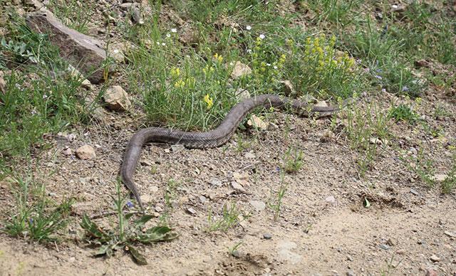 Erzurum'un Oltu ilçesinde doğa yürüyüşüne çıkan bir grup, 1,5 metre uzunluğunda dünyanın en zehirli yılanlarından Hopa engereği ile karşılaştı.