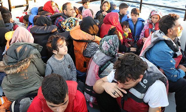 İzmir'in Dikili ilçesinde, 2 ayrı lastik botla Yunan adalarına geçmek isteyen aralarında kadın ve çocukların da bulunduğu Afganistan uyruklu 83 kaçak göçmen, Sahil Güvenlik helikopteri tarafından fark edilerek, yakalandı.