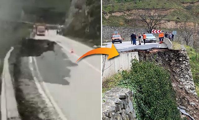 Ordu'nun Fatsa-Aybastı karayolunda heyelan meydana geldi. Heyelan anı bir vatandaşın cep telefonu kamerasına yansıdı.