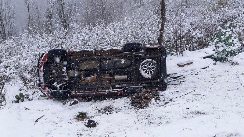 Ordu'da kamyonet karla kaplı yolda şarampole yuvarlandı: 6 yaralı