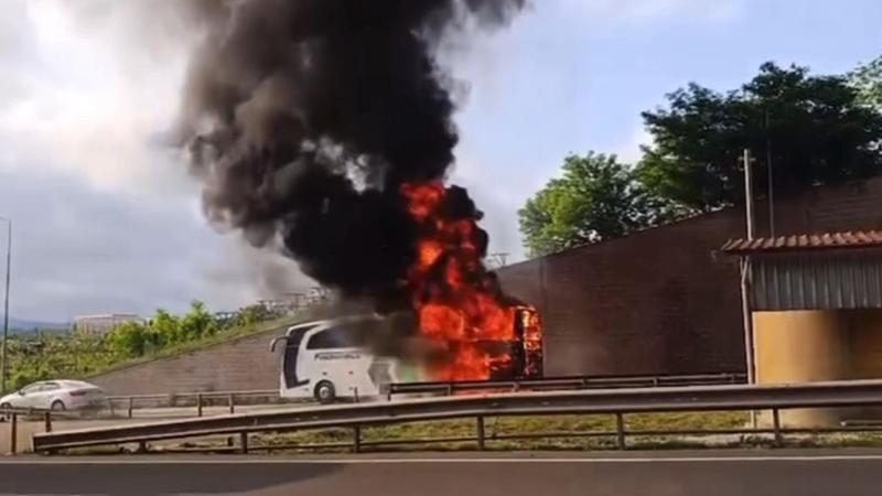 Otobüsün alev alev yandığı anlar ise cep telefonu kamerasıyla kaydedildi. Yangınla ilgili soruşturma başlatıldı.