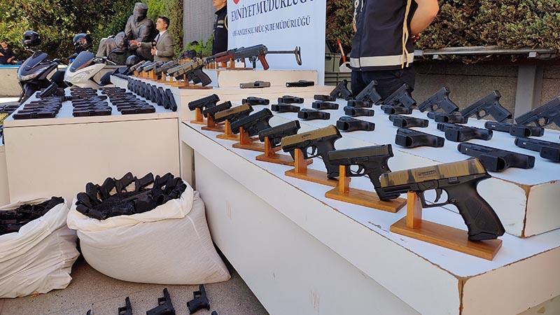 Organize suç örgütü operasyonunda ele geçirilenler emniyette sergilendi