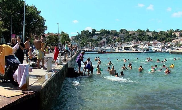 Sıcaktan bunalan İstanbullular, yangınlar nedeniyle ormanlara girişlerinde yasaklanmasıyla sahillere akın etti. Kimileri sahilde güneşlenirken kimileri kendini Boğaz'ın serin sularına bıraktı.