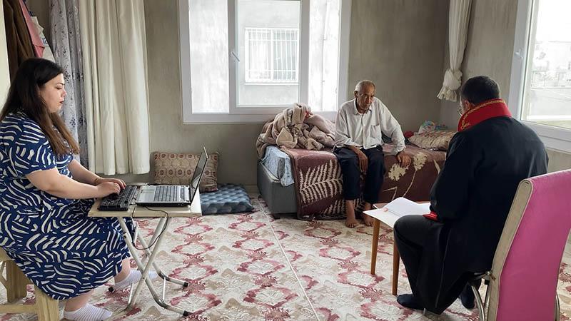 Bakanlıktan yapılan açıklamaya göre, Adalet Bakanlığı'nın hayata geçirdiği 'evde adalet hizmeti' uygulamasıyla, sağlık sorunları veya yaşlılık nedeniyle mahkemeye gelemeyen vatandaşların ifadesinin evlerinde alınması sağlanarak, yargılamalarda gecikmelerin önüne geçiliyor. Bu kapsamda, Osmaniye 5'inci Asliye Ceza Mahkemesi; ‘Tehdit’, ‘Basit yaralama’ ve ‘Hakaret’ suçlarından müşteki olan Selahaddin Alban'ı ifadeye çağırdı. Ancak sağlık sorunları nedeniyle adliyeye gidemeyen müşteki, dilekçeyle mahkemeye mazeret bildirdi. Bunun üzerine mahkeme hakimi, müştekinin Adalet Bakanlığı tarafından uygulamaya konulan 'evde adalet hizmeti' kapsamında ifadesinin alınmasına karar verdi. Karar üzerine 5'inci Asliye Ceza Mahkemesi Hakimi Ebubekir Rözgar, katip ve mübaşirden oluşan mahkeme heyeti, adliyeye 5 kilometre uzaklıkta ikamet eden müşteki Selahaddin Alban'ın ifadesini ve onun bakımını üstlenen tanık Amşe Alban'ın beyanını aldı.
