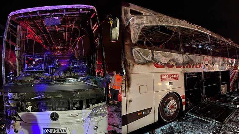 Osmaniye’de yolcu otobüsü yandı