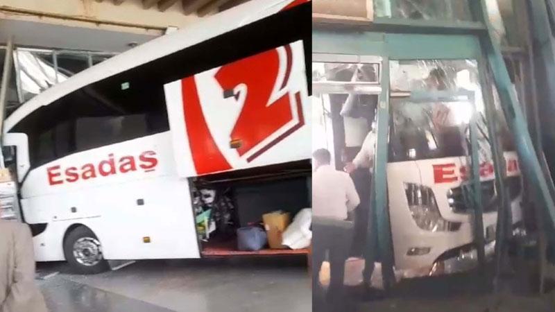 Olay, saat 11.30 sıralarında İzmir Otobüs ve Şehir Terminali’nde meydana geldi. İzmir- Erzurum arası sefer yapacak olan M.K. yönetimindeki 34 BN 7040 plakalı Esadaş Firması’na ait otobüs, yolcu bekleme alanına çarptı. Ölen ya da yaralananın olmadığı, bekleme alanındakilerin hemen uzaklaştığı kazada, profiller ve camlar kırıldı.