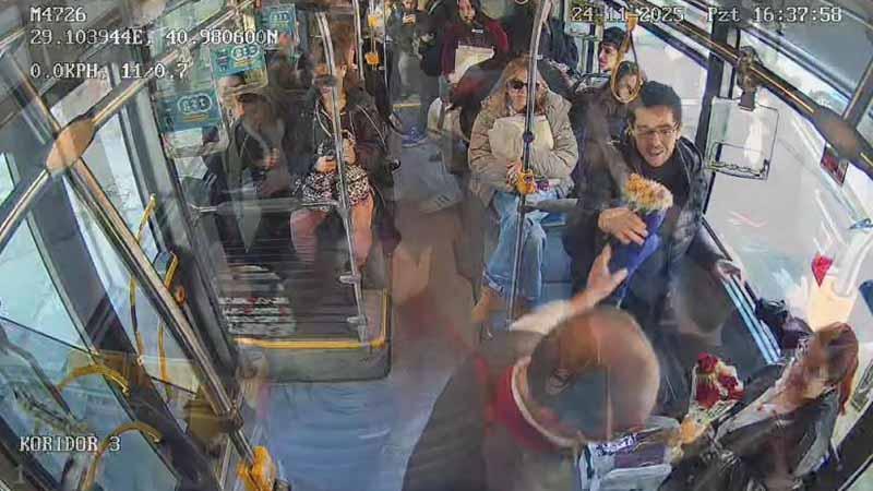 İETT otobüsü şoförü, 24 Kasım Öğretmenler Günü'nde aracında yolculuk yaptığını farkettiği iki öğretmene, kırmızı ışıkta durduğu sırada aldığı çiçekleri hediye etti.