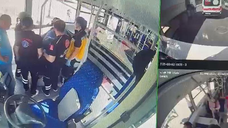 Otobüste fenalaşan yolcuya müdahale kamerada