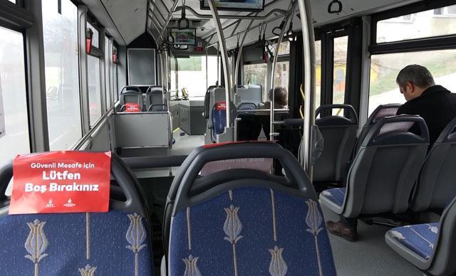 Çin'de ortaya çıkan ve tüm dünyayı tehdit eden Koronavirüs salgınına karşı Türkiye büyük bir mücadele veriyor. Tüm toplu ulaşım araçlarında araç ruhsatında belirtilen yolcu taşıma kapasitesinin yüzde 50'ye düşürülmesinin ardından, araç koltuklarına da sosyal mesafe standartları getirildi. İstanbul genelindeki metro, tramvaylar ile metrobüs ve otobüs araçlarına "Güvenli mesafe için lütfen boş bırakınız" çıkartmaları ile bilgilendirici afişler asıldı. Boş bırakılması gereken koltukların üstüne yapıştırılan çıkartmalar ile bir metre kuralına toplu ulaşım araçlarında da uyulması sağlanıyor. Araç içi anonslarla da düzenleme halka duyuruluyor.