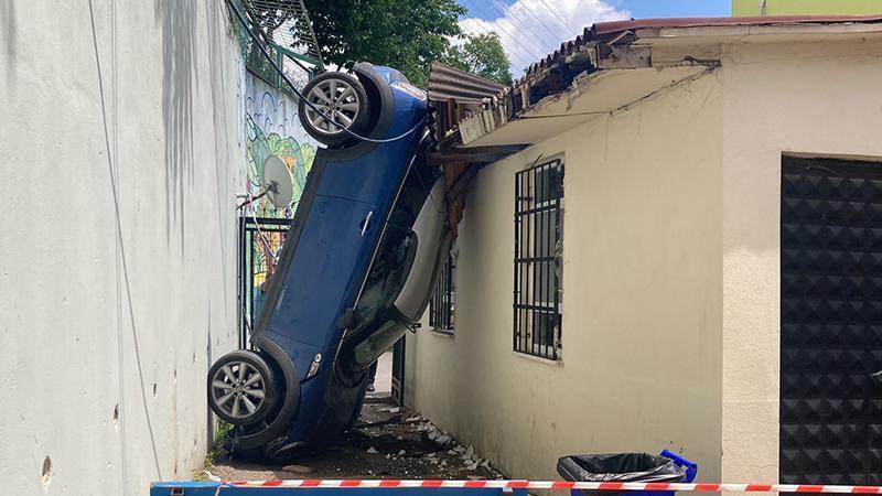 Otomobil, 5 metreden okul bahçesine uçtu; sürücü yaralandı
