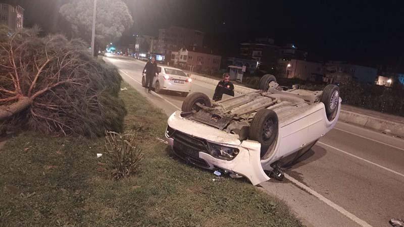 Otomobil, ağaca çarpıp ters döndü; 1 yaralı